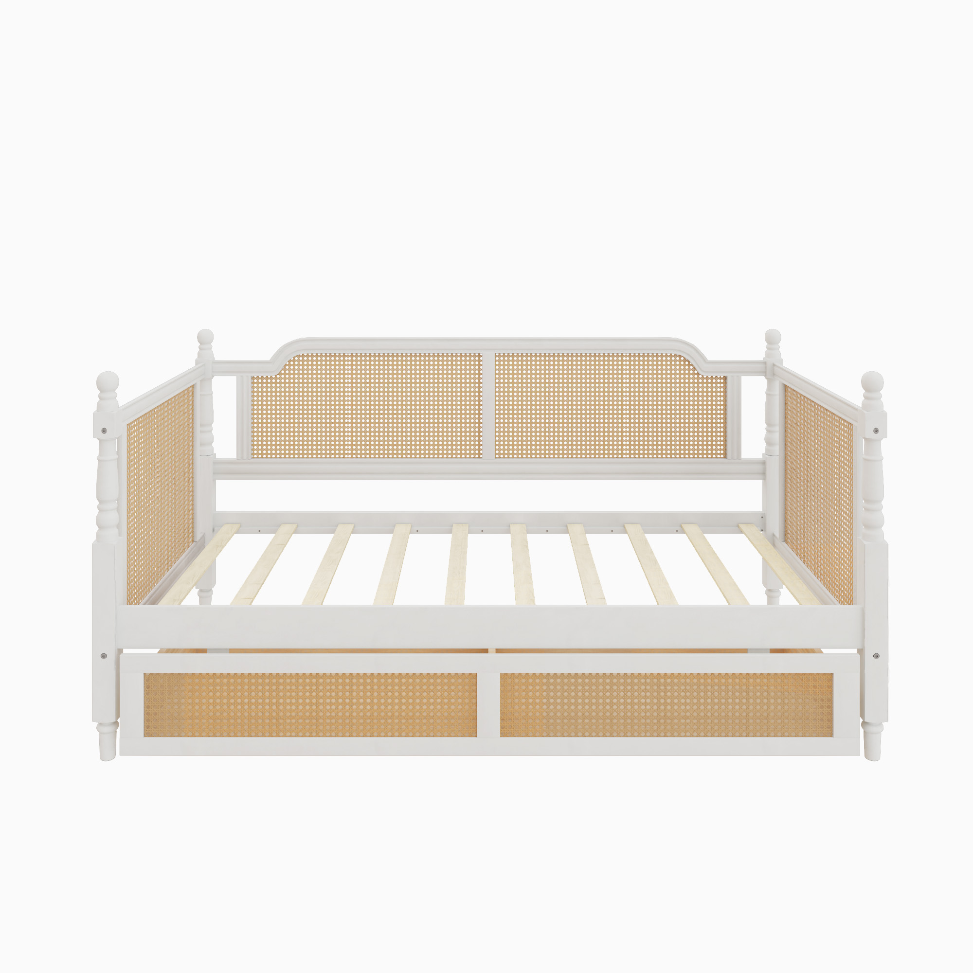 Home > Traditional Style Rattan Twin Size Daybed With 2 Drawers For Limited Space, Guest Room, No Box Spring Needed,Antique White